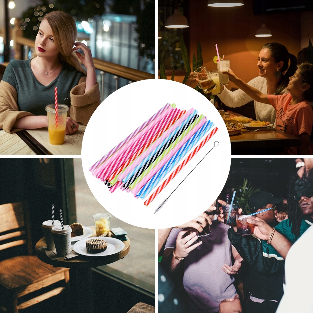 25x барвисті багаторазові жорсткі пластикові смугасті соломинки з чистячою щіткою для вечірки