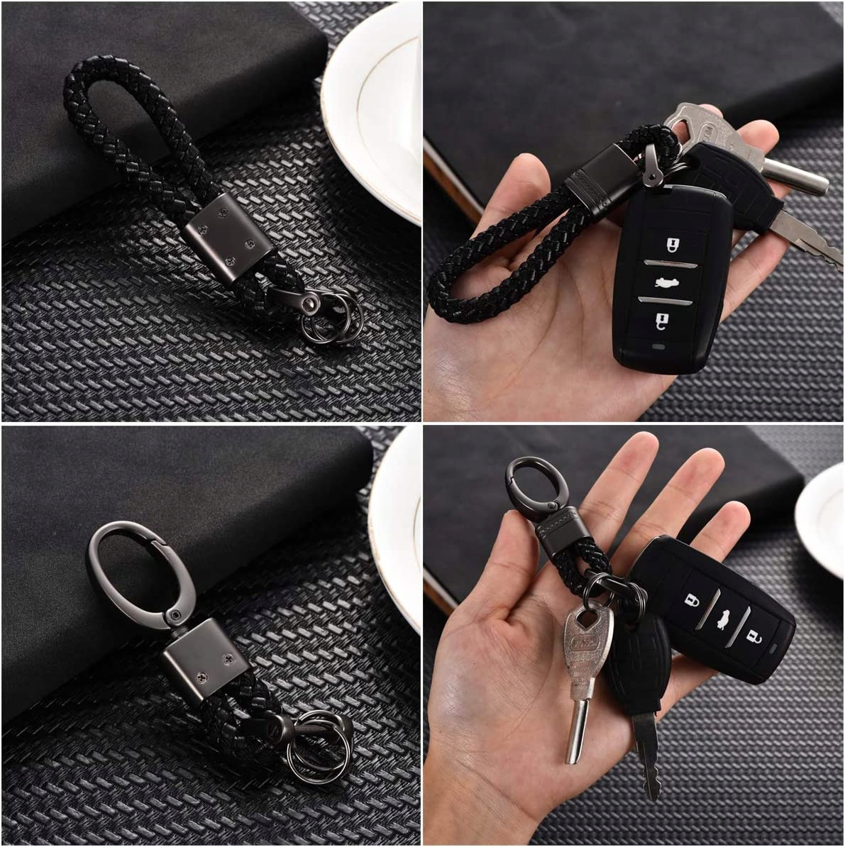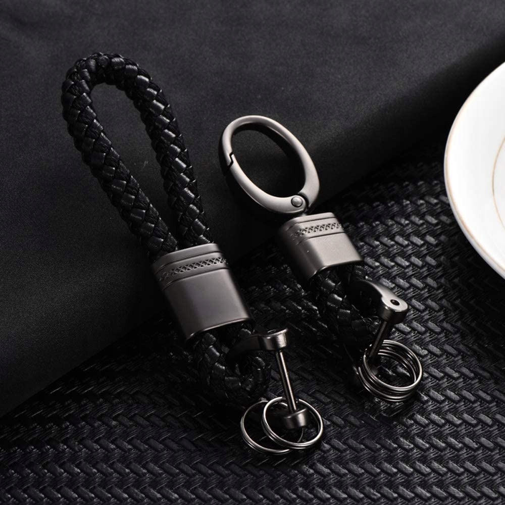 Брелок із поліуретанової мотузки та цинкового сплаву, 2 шт., чорний плетений брелок