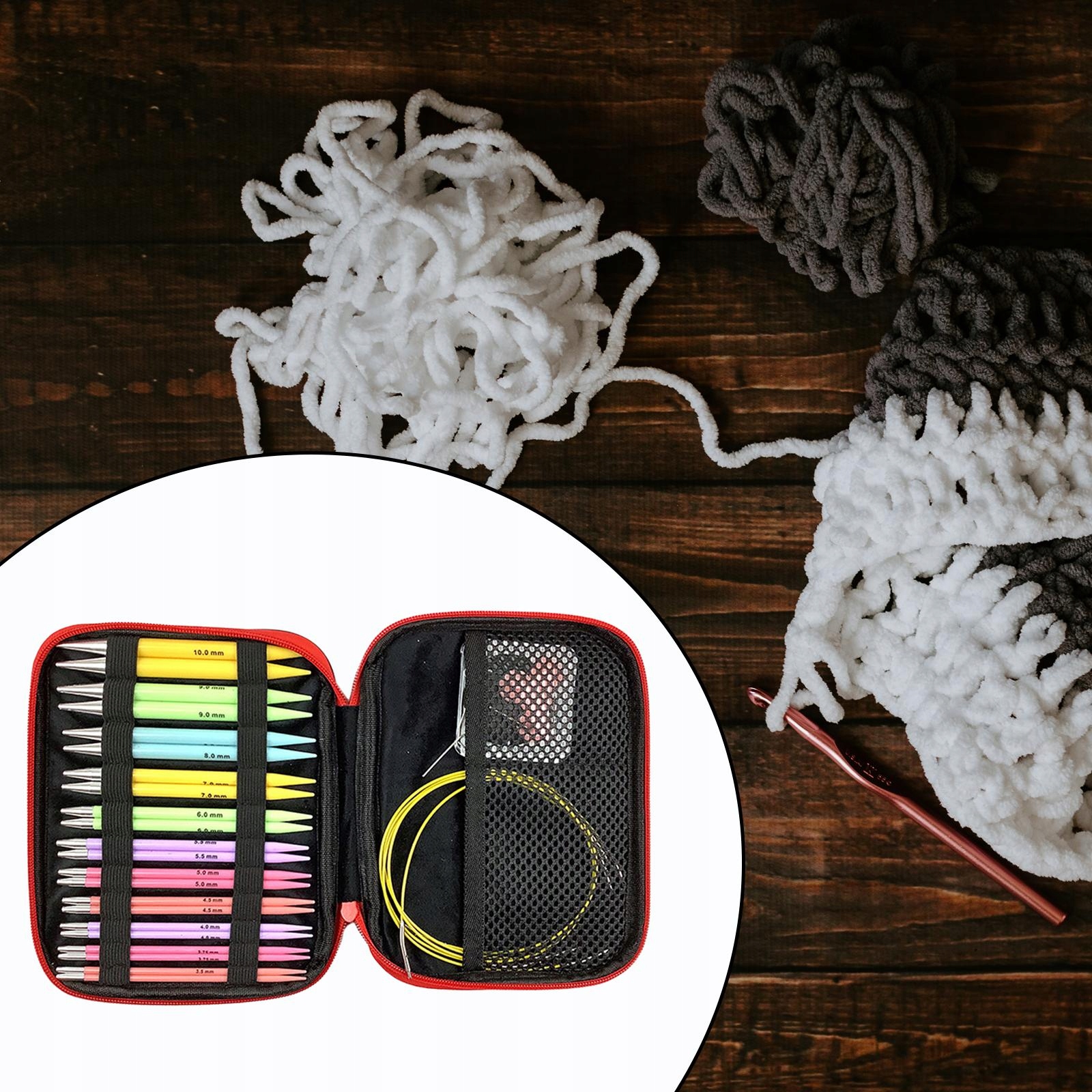 повнорозмірний набір гачків для в'язання гачком: набір для в'язання гачком включає в себе сумку для в'язання гачком, 22 різнокольорових алюмінієвих гачка (3,5-10,0 мм), придатних для початківців і досвідчених любителів в'язання гачком. Ми оснащені заглушкою, з'єднувальним дротом, з'єднувальним портом, інструментом для натягу та іншими необхідними аксесуарами для в'язання гачком для задоволення ваших різних потреб і можуть допомогти вам з великою кількістю проектів, рушників, шапок і т. д.< / п>