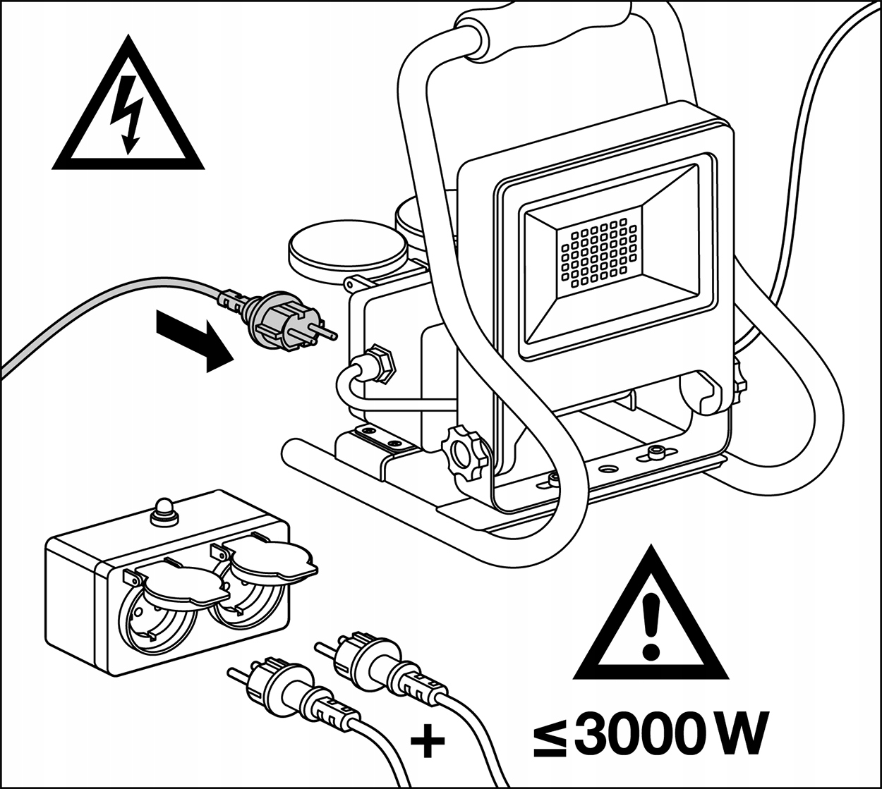 прожектор оснащений 3-метровим кабелем з вилкою типу E/F і двома розетками 230 В з кришками - максимальне навантаження на розетки 3000 Вт. Світлодіодний світильникмає вбудований джерело світла з потужністю30 Вт і нейтральним білим кольором світла (4000K ). Нейтральний колір світла точно відображає кольори освітлюваних предметів і найбільш близький до денного світла.Світлодіодна лампа буде відмінно працювати скрізь, де вам потрібен надійний і енергозберігаючий джерело світла.е>