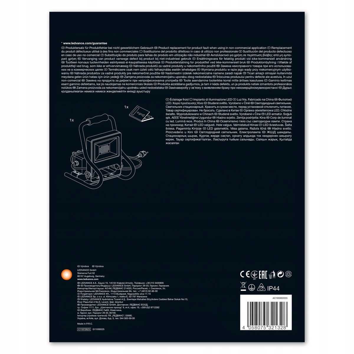 світлодіодний робочий прожектор серії WORKLIGHTS R-STAND бренду LEDVANCE < /B > - це портативна лампа , яка завдяки компактному дизайну і оптимізованому вазі відмінно підійде скрізь, де вам потрібно.завдяки високому ступеню захисту-IP44, він стійкий до бризок води. Світлодіодний прожектор має напівглянцевий абажур із загартованого скла, який забезпечує рівномірне освітлення.