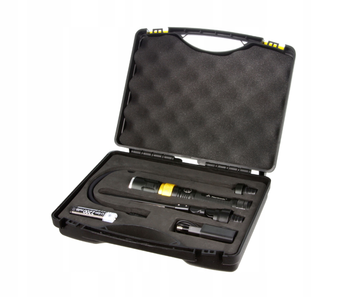 комплект освітлення ідеально підходить для роботи в майстерні. У комплект входять: підстава ліхтарика, фокусировочная головка, кутова головка 360º з УФ + білим світлом, фокусировочная інспекційна головка, акумулятор, джерело живлення 230 В, USB-кабель, чохол. Головка ліхтарика оснащена сверхярким світлодіодом, який генерує Потужність 250 люмен. Завдяки використанню об'єктива і функції фокусування, Beemer 4.1 досягає дальності світла до 120 метрів. Перемикач розташований в центральній частині корпусу, що дозволяє легко перемикатися між режимами. Ліхтарик може працювати у вертикальному або горизонтальному положенні, закріплений на магнітному тримачі, що дає можливість багатофункціонального використання. Beemer 4.1 живиться від однієї літій-іонної батареї 18650 з захистом PCM (в комплекті)