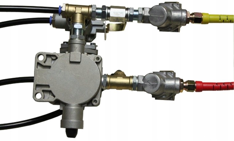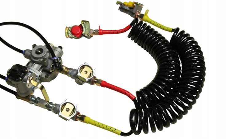 Повний комплект клапанів двопровідних пневматичних гальм з висновком для другого причепа.е>