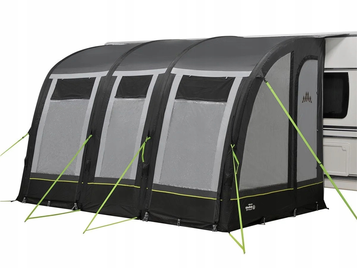 Obelink Viera 390 Easy Air-це передпокій для каравану з накачаною стійкою, який має безліч варіантів, коли мова йде про вентиляцію, вікна та двері. Ми можемо запропонувати цей вестибюль за привабливою ціною.