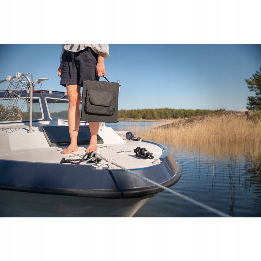 пакет сонячних панелей для транспортування і легкого використання з регулятором і панеллю управління . Ви можете підключити його до акумулятора 12 В або будь-якого джерела 12 В з проводами, що входять до комплекту. Коли панель не використовується, її можна згорнути і заховати в зручну сумку з ручкою.