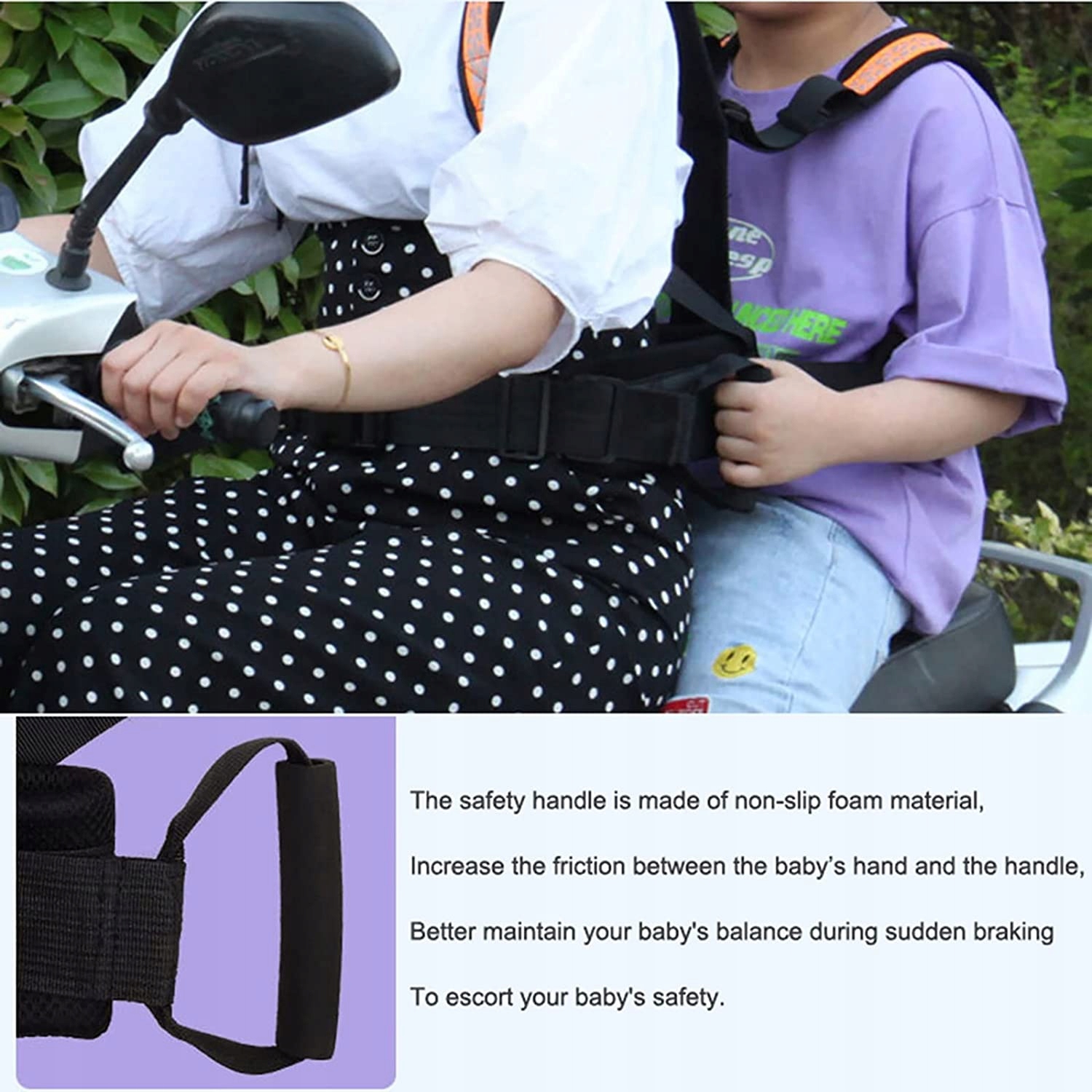 • РЕГУЛЬОВАНИЙ РЕМІНЬ БЕЗПЕКИ: є два рівні регулювання відповідно до росту дитини, високий і низький. Щоб адаптувати дітей різного віку, наші шлейки регулюються. Цей дитячий ремінь безпеки для мотоцикла має плечовий ремінь, поясний ремінь для дитини та поясний ремінь для водія, його можна регулювати відповідно до вашої безпеки та комфорту.