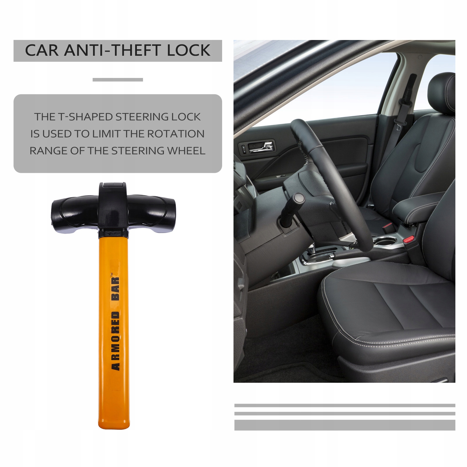 ✅Т-подібний замок рульового колеса, внутрішній захист автомобіля, швидка і проста установка.е>