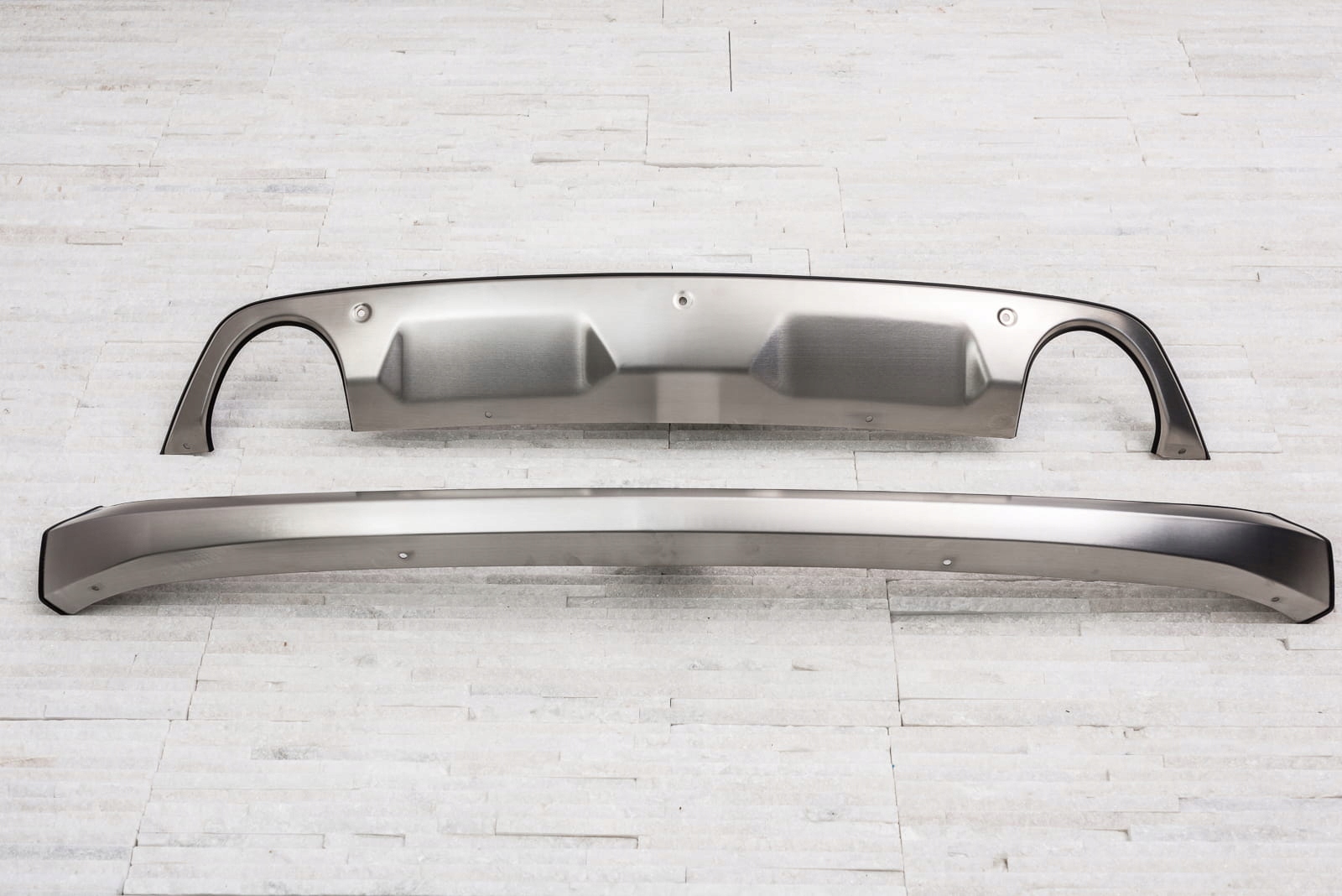 Спідниці виготовлені з високоякісної нержавіючої сталі з атласною обробкою. У комплект входять аксесуари для передньої і задньої частини автомобіля, а також необхідне монтажне обладнання. Ми рекомендуємо установку в професійній майстерні.