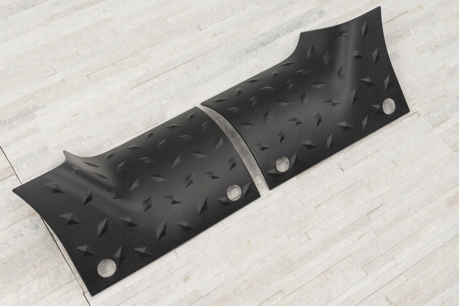 накладки виготовлені з АБС - пластику чорного кольору, що імітує рифлений лист. Вони візуально підкреслюють позашляховий характер автомобіля, не збільшуючи надмірно його вагу. Крім того, крім функції укладання, вони захищають лак від потертостей або подряпин. е>