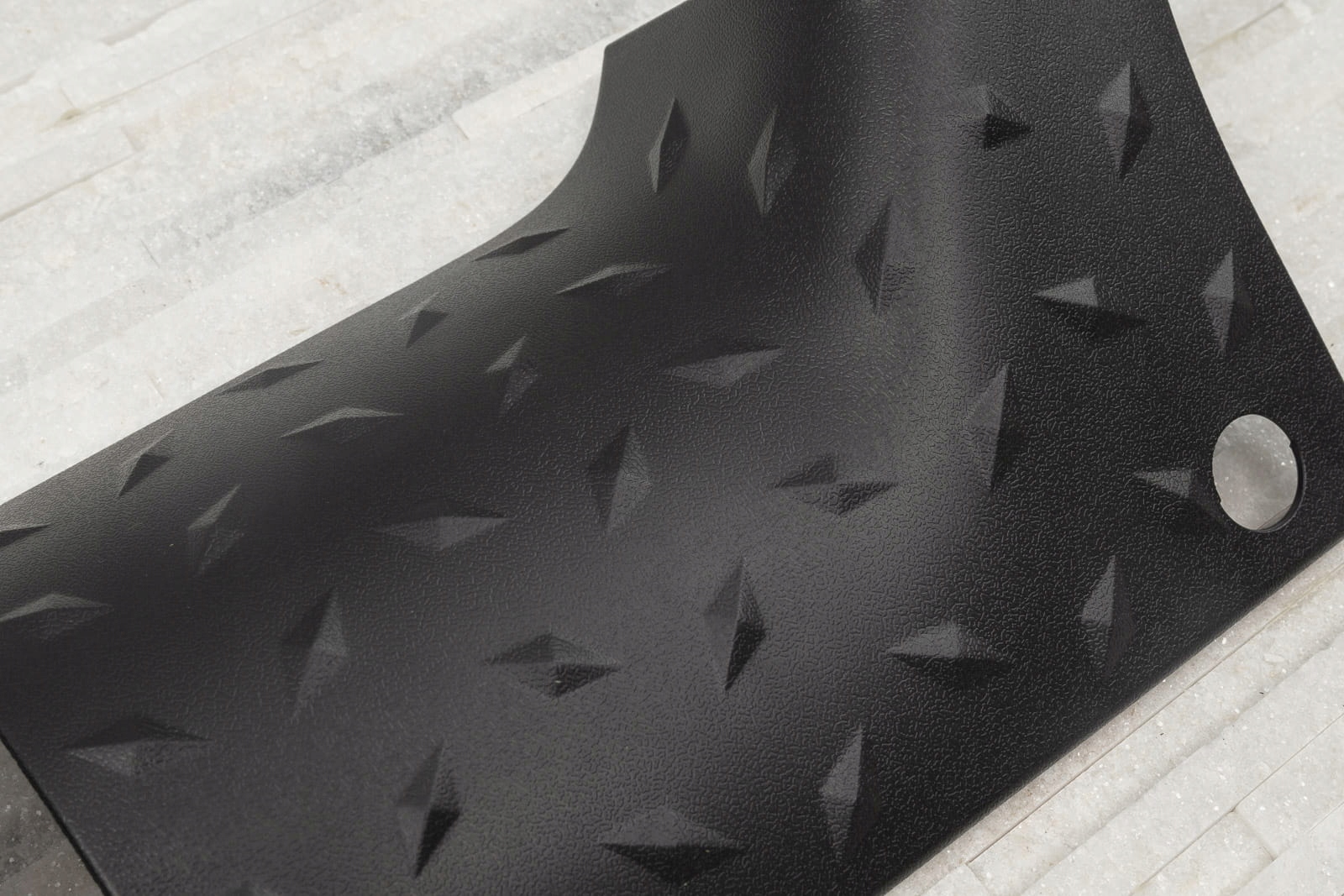 <е> стилізовані, тюнінгові кути підшивки, призначені для JEEP WRANGLER JL 2018+. е>накладки виготовлені з АБС - пластику чорного кольору, що імітує рифлений лист. Вони візуально підкреслюють позашляховий характер автомобіля, не збільшуючи надмірно його вагу. Крім того, крім функції укладання, вони захищають лак від потертостей або подряпин. е>