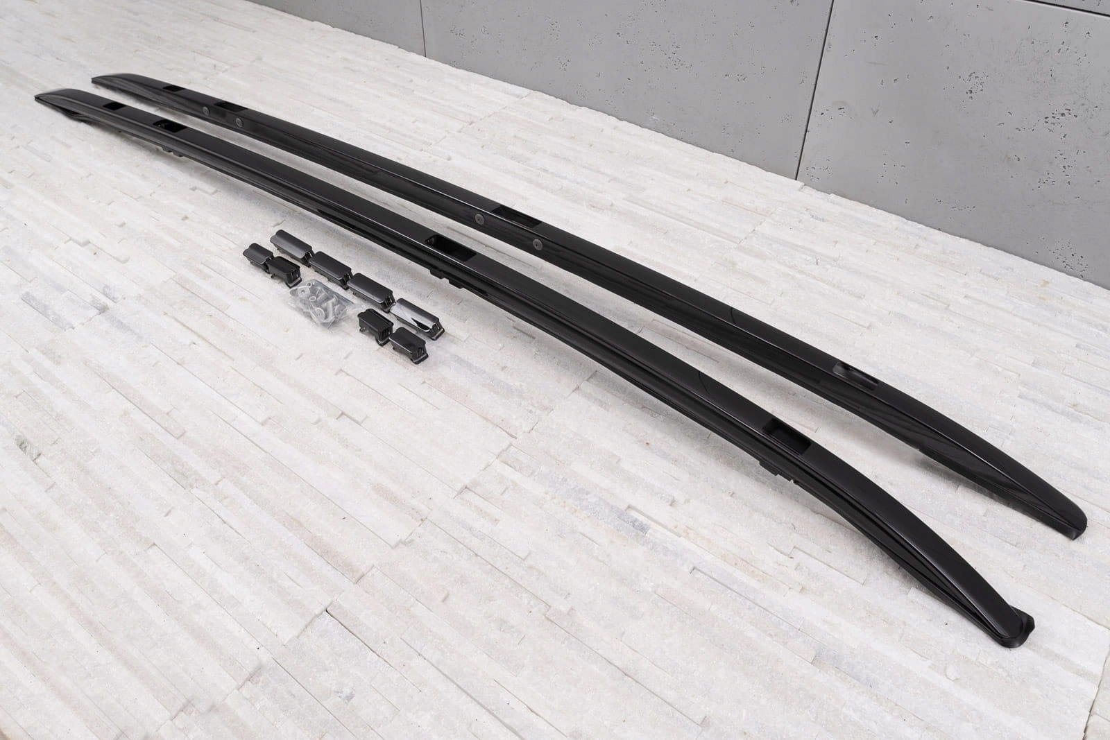 Виріб виготовлено з високоякісного алюмінію та ABS-пластику. У комплект входить набір рейлінгів для лівої та правої сторін. Перила монтуються на заводі за допомогою кріпильних елементів, що входять у комплект.