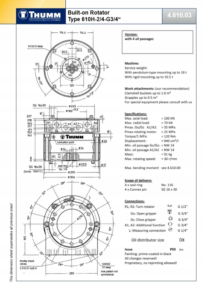 гідравлічний ротатор THUMM тип 610 H-2/4технічні характеристики: