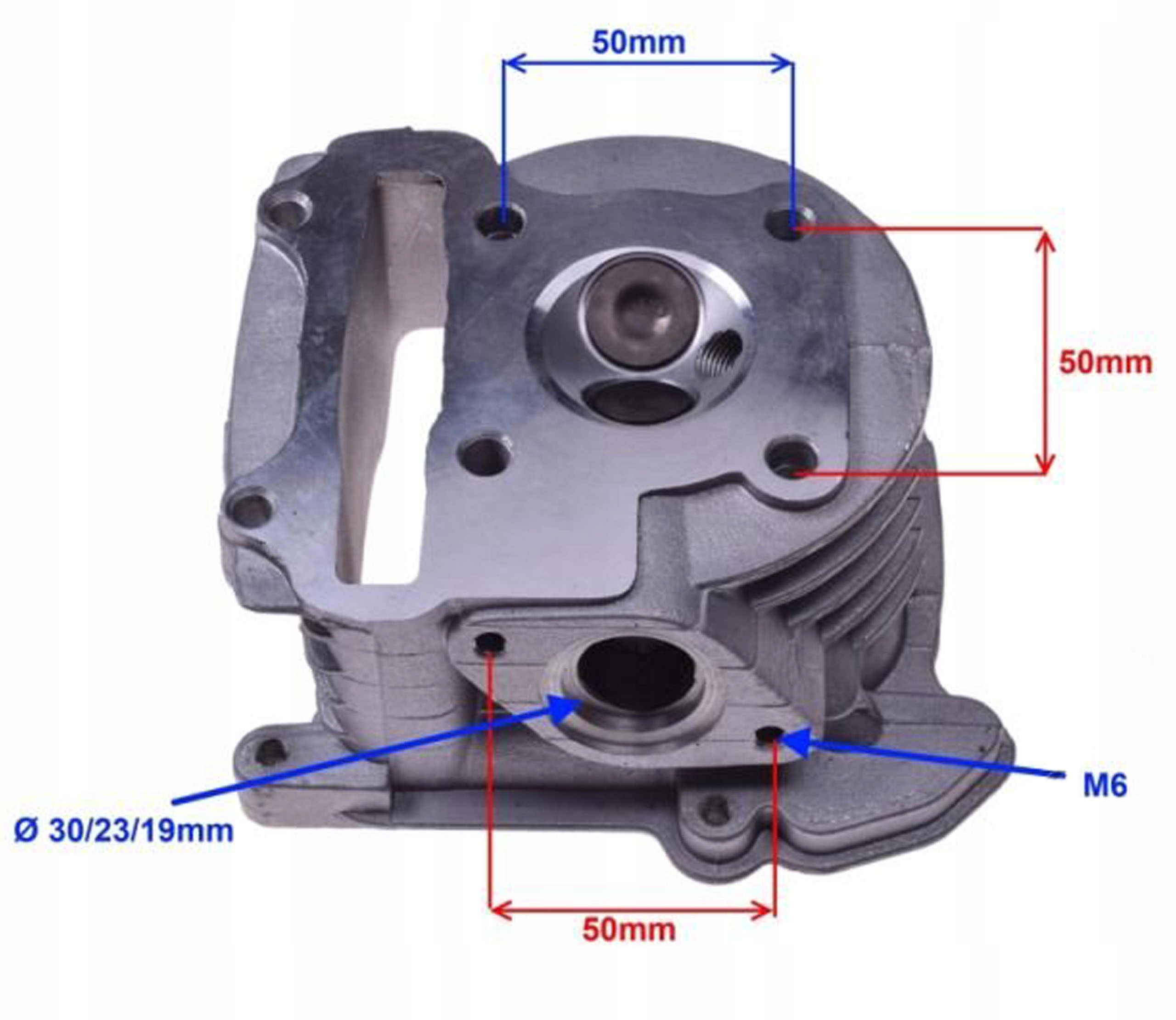 опис: головка циліндра 50cc з клапанами, використовувана в популярних китайських скутерах 4T, двигун GY6. ВИСОКОЯКІСНИЙ ПРОДУКТ МАРКИ WM MOTOR.
