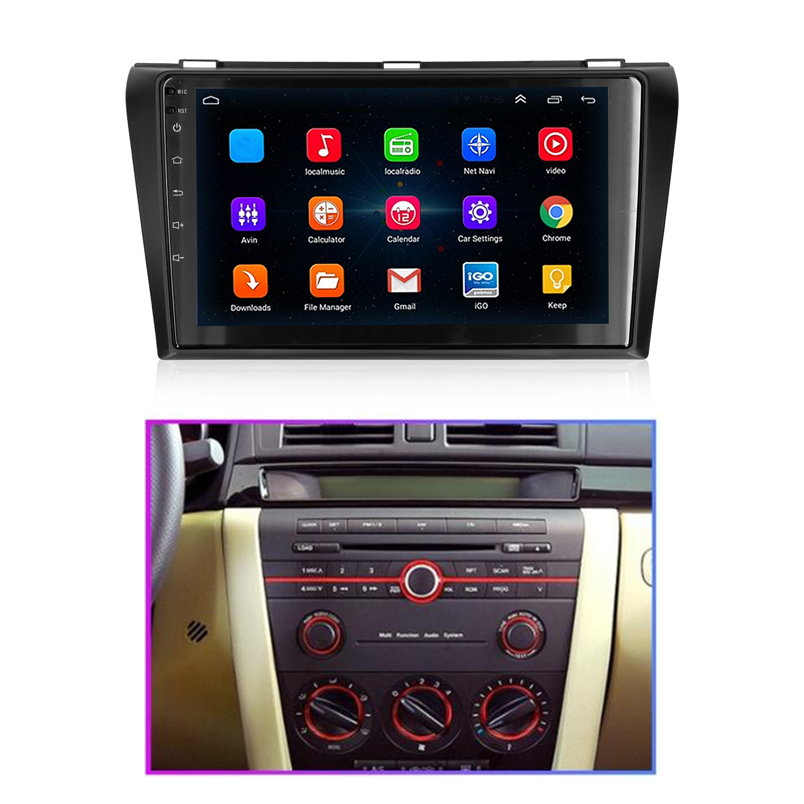 2. 9-дюймовий ємнісний сенсорний екран, роздільна здатність екрану 1024 x 600 HD, Підтримка відтворення відео 1080p, підтримка входу Камери заднього виду, вхідний кабель камери легко підключається.