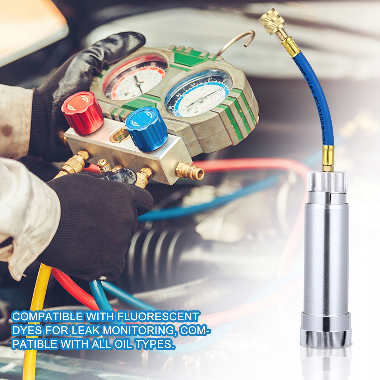 цей продукт являє собою трубку для наповнення чистого рідкого холодильного масла. Масляний бак можна відкрутити, а охолоджуюче масло можна залити в Автомобільний кондиціонер. Підходить для наповнення системи охолодження автомобільного кондиціонера.