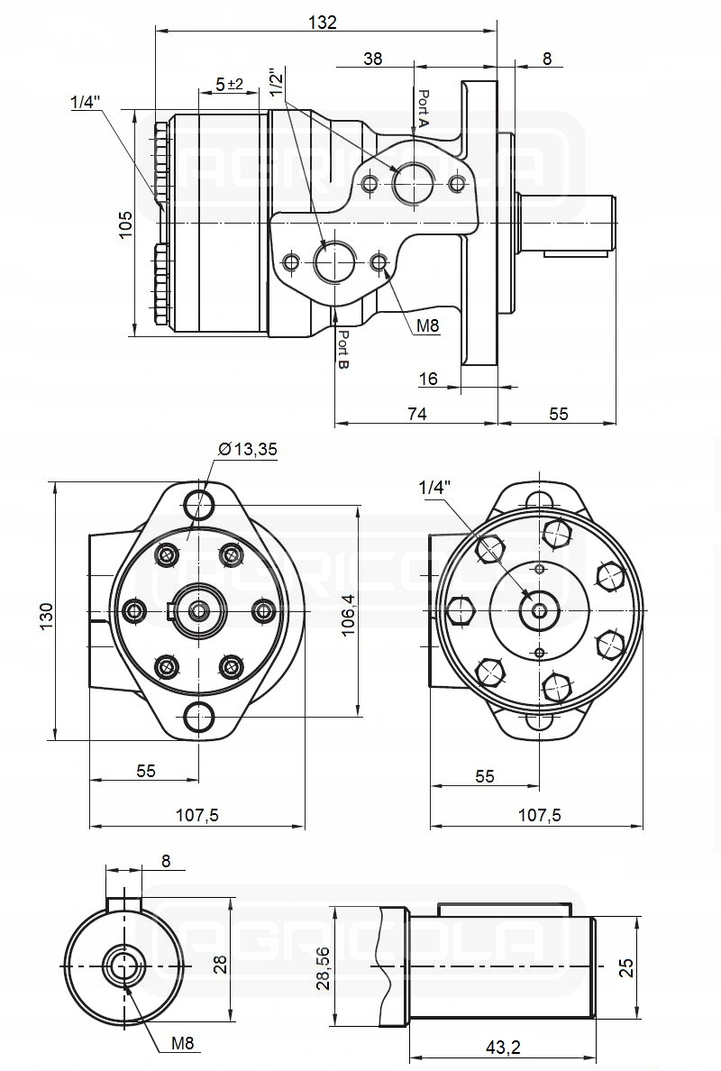 гідравлічний двигун BMR 25 призначений в першу чергу для роботи в різних видах сільськогосподарського та промислового обладнання. У системах, де середня потреба в потужності і при середній витраті масла ми хочемо отримати досить високу швидкість обертання.