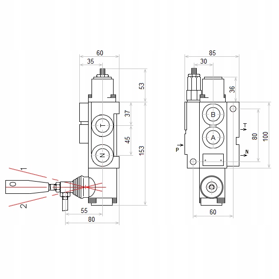 з правого боку Гідравлічна схема розподільника: