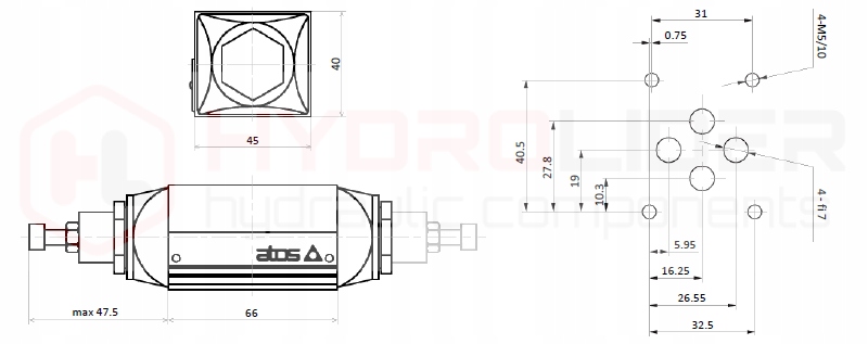 зворотний дросельний клапан на зливі, встановлений безпосередньо на розподільнику. Підходить для спліттерів CETOP 03 NG6. Регулює потік масла, що виходить з Порту B. у протилежному напрямку потік вільний.