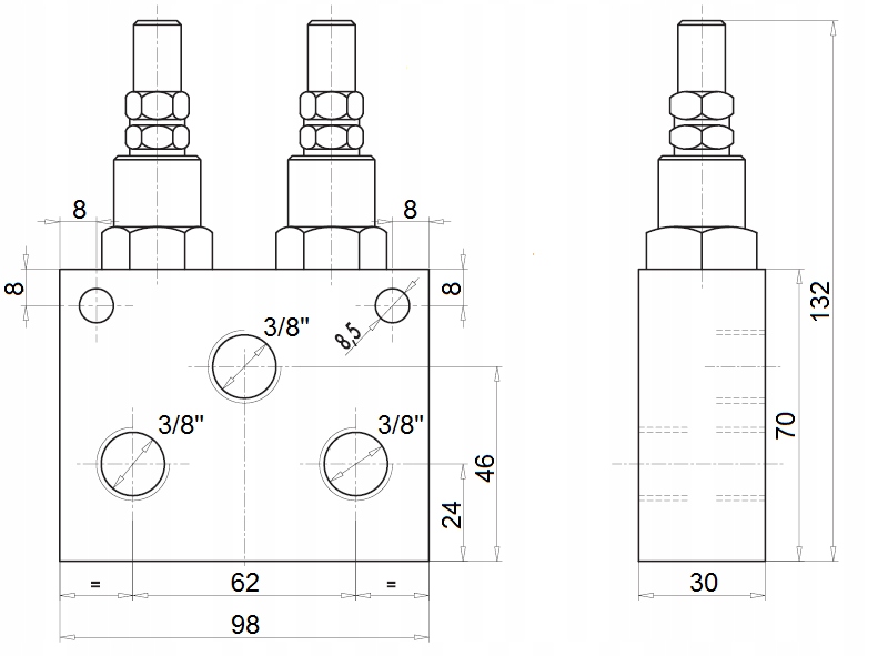 подвійний клапан, дає можливість контролювати максимальний тиск на двох незалежних гідравлічних лініях. Обидві лінії мають лише спільну лінію повернення (переливу).