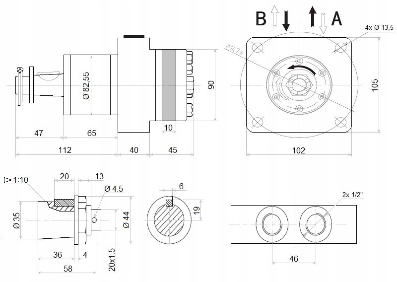 гідравлічний двигун BMR 50 з додатковим підшипником, призначений для роботи в різних типах сільськогосподарського та промислового обладнання, де на вал двигуна можуть впливати дуже великі бічні напруги і осьові сили. Рекомендується в основному для приводу барабана в рембаке, конвеєрних стрічках, для приводу ланцюгів і ременів передачі, а також для приводу коліс в ходових системах в автомобілях з гідравлічним приводом.