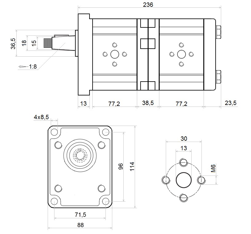 виробник дає можливість вільно встановлювати тиск на обидві системи, які живлять окремі секції насоса. Користувач повинен пам'ятати, щоб встановити переливні клапани на обох секціях таким чином, щоб попит на потужність другого насоса (той, що ззаду) був менше, ніж попит на потужність першого насоса. Найбезпечніше встановити однаковий тиск на обох насосах, ризик неправильної настройки виникає, коли встановлений тиск на другому насосі набагато вище, ніж на першому насосі. Більш детальну інформацію про споживаної потужності і налаштування тиску ви можете дізнатися у консультанта.