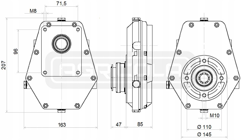 Трансмісія ідеально підходить для приводу гідравлічних насосів в лісовій, будівельній техніці і багатьох тракторах, в тому числі C-330, C-360, C-385, ZETOR, MF інших, що мають вихід ВВП.