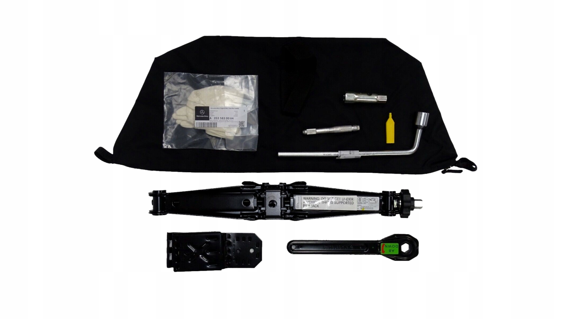 оригінальний комплект для заміни колеса: домкрат, гайковий ключ, Рукавички, сумка для інструментів / Mercedes-Benz