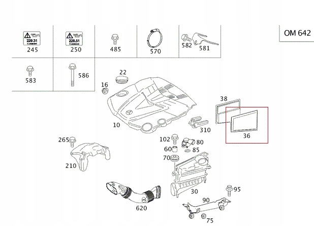 оригінальний повітряний фільтр лівий призначений для автомобілів марки Mercedes-Benz з двигуном з маркуванням OM642