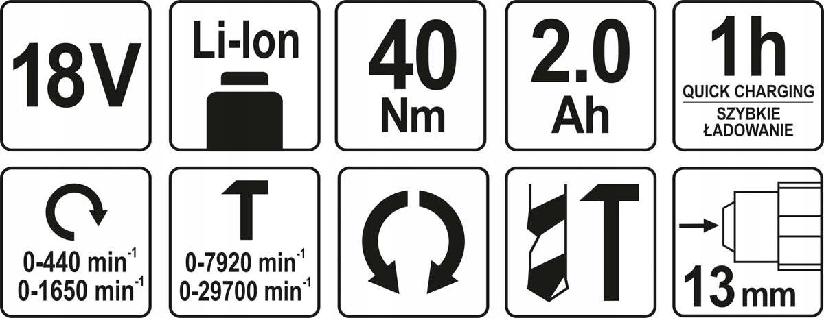 в комплекті: акумуляторна дриль, літій-іонний акумулятор 18 в 2 Ач, Швидке зарядний пристрій (1 год для акумулятора 2 Ач), чохол.е>