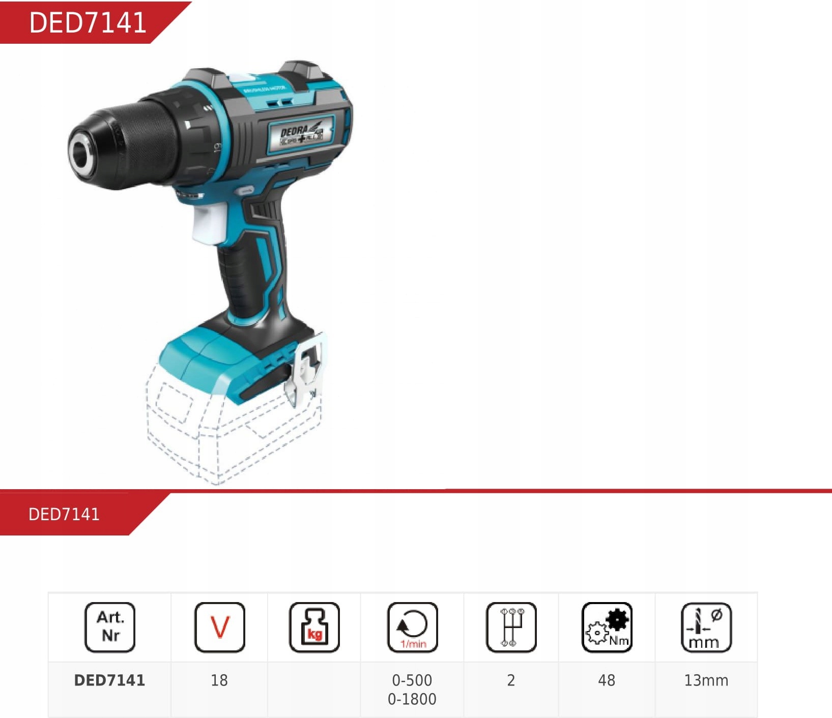виробник: Dedraбезщітковий шуруповерт DED7141. Він знайде застосування як в майстерні DIY, так і у професіоналів ремонтно-будівельної галузі.за допомогою цього шуруповерта, крутний момент якого становить 48 Нм, ми відмінно впораємося з загвинчуванням і свердлінням в таких матеріалах, як дерево, метал, пластик, пластик. Корпус виготовлений з нейлону з домішкою скловолокна, завдяки чому підвищена стійкість до механічних пошкоджень і ультрафіолетового випромінювання. Ергономіку і комфорт роботи покращують: легка вага пристрою і подгумная рукоятка. Додаткове світлодіодне освітлення призведе до того, що ми будемо виконувати роботу в недостатньо освітлених, важкодоступних місцях. 13мм самоблокуючий патрон, одностовбурний, забезпечує просту установку всіх видів робочих наконечників, тобто Свердла, біти.