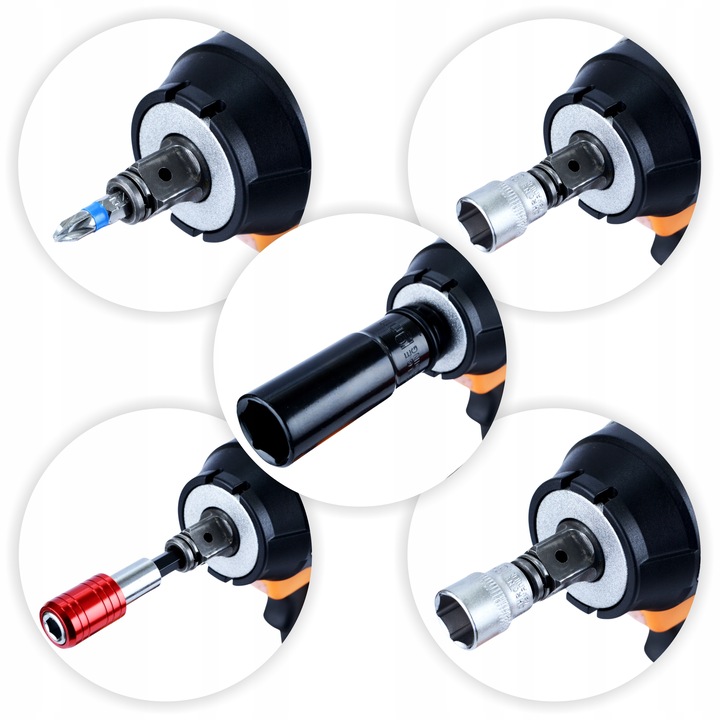 1/2" (дюйм) тримач із додатковим 1/4" шестигранним гніздом , що робить пристрій ще більш універсальним.