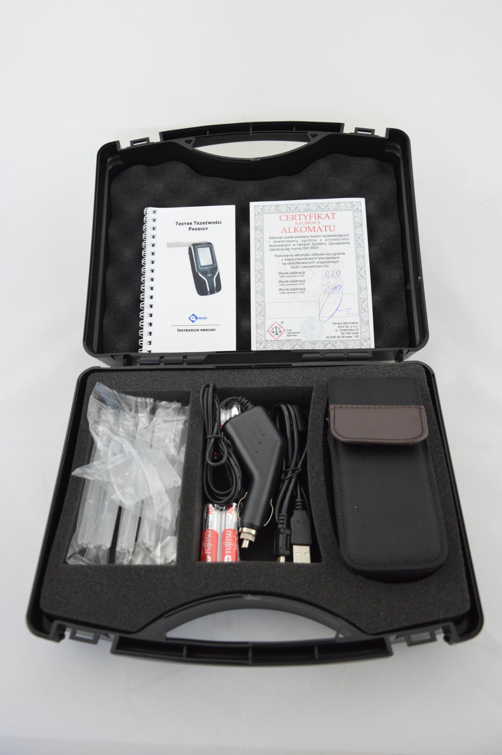 тестер тверезості Prodigy S-це передове пристрій для перевірки тверезості останнього покоління. Цей алкотестер оснащений високоякісним електрохімічним датчиком групи FX3, що забезпечує відповідний рівень індикації. Завдяки інтуїтивно зрозумілій панелі управління, цей алкотестер є одним з найпростіших у використанні професійних пристроїв, які ми можемо знайти на ринку. Результати випробувань представлені на прозорому РК-дисплеї. Вбудована в пристрій пам'ять дозволяє записувати до 10 тисяч вимірювань разом з даними про випробуваного, даними про вимірювач, а також точно визначеним результатом і часом виконання. Через високу точність вимірювань алкотестер Prodigy s охоче використовується установами суспільної довіри, а також невеликими і великими компаніями. після процедури калібрування алкотестер може використовуватися в доказових цілях.
