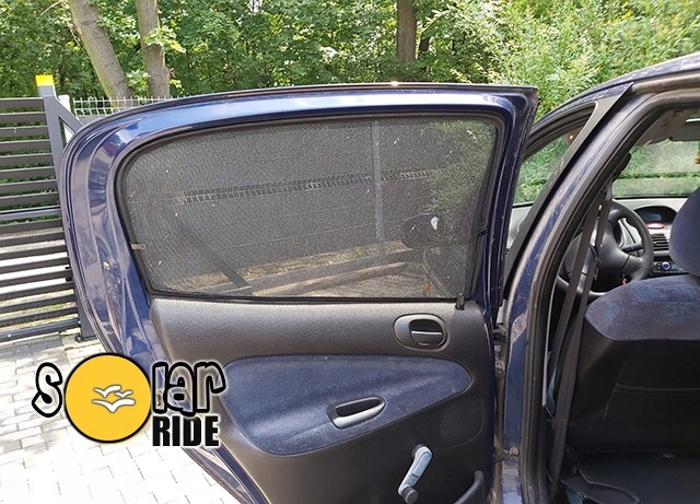 комплект штор для Peugeot 206 (1998-2009) складається з: - 2 штор для задніх бічних дверей - необхідних гачків.