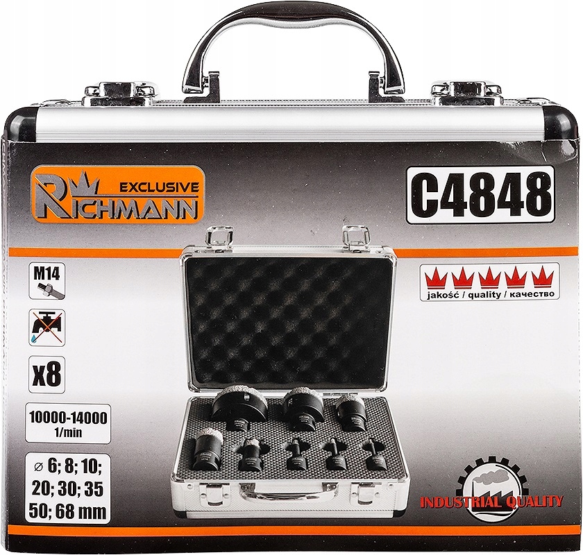 - Високоякісний набір алмазних колодкових пилок розміром 6 – 68 мм для сухого свердління.