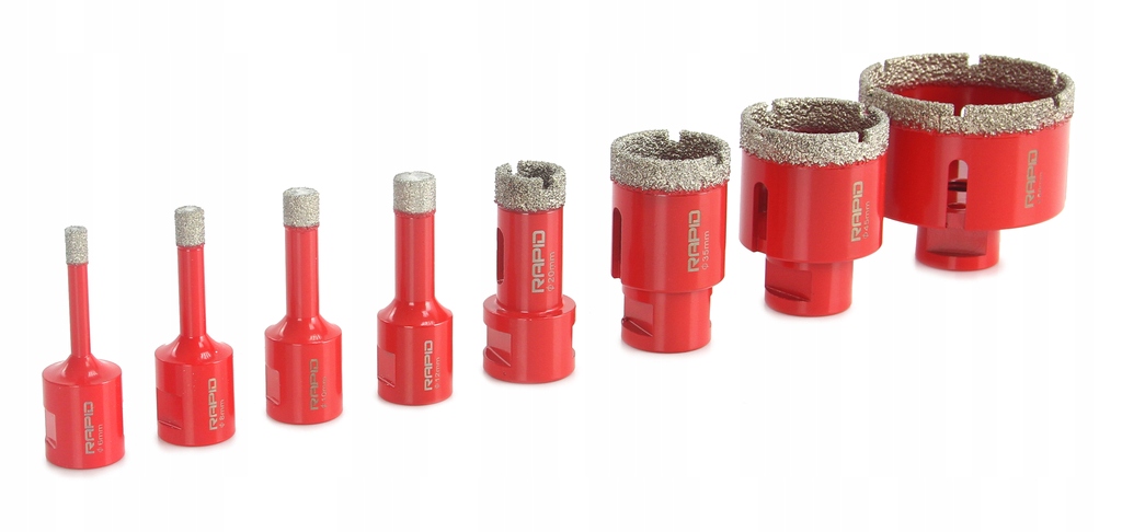 Колонкові пилки RAPID для сухого свердління. Ці колінчасті пилки кріпляться за допомогою адаптера для дрилі або свердлильної установки. Їхньою великою перевагою є те, що кожна ямкова пила також підходить до будь-якої шліфувальної машини з різьбленням M14.