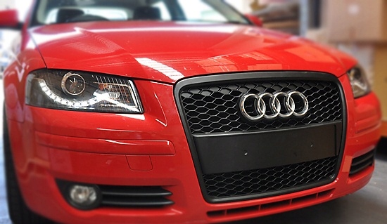 елемент аукціону: новий гриль без значка для Audi A3 8P (з 2005-2008 роки виробництва), Тюнінг, чорний глянець , стільники-візерунок RS.е>