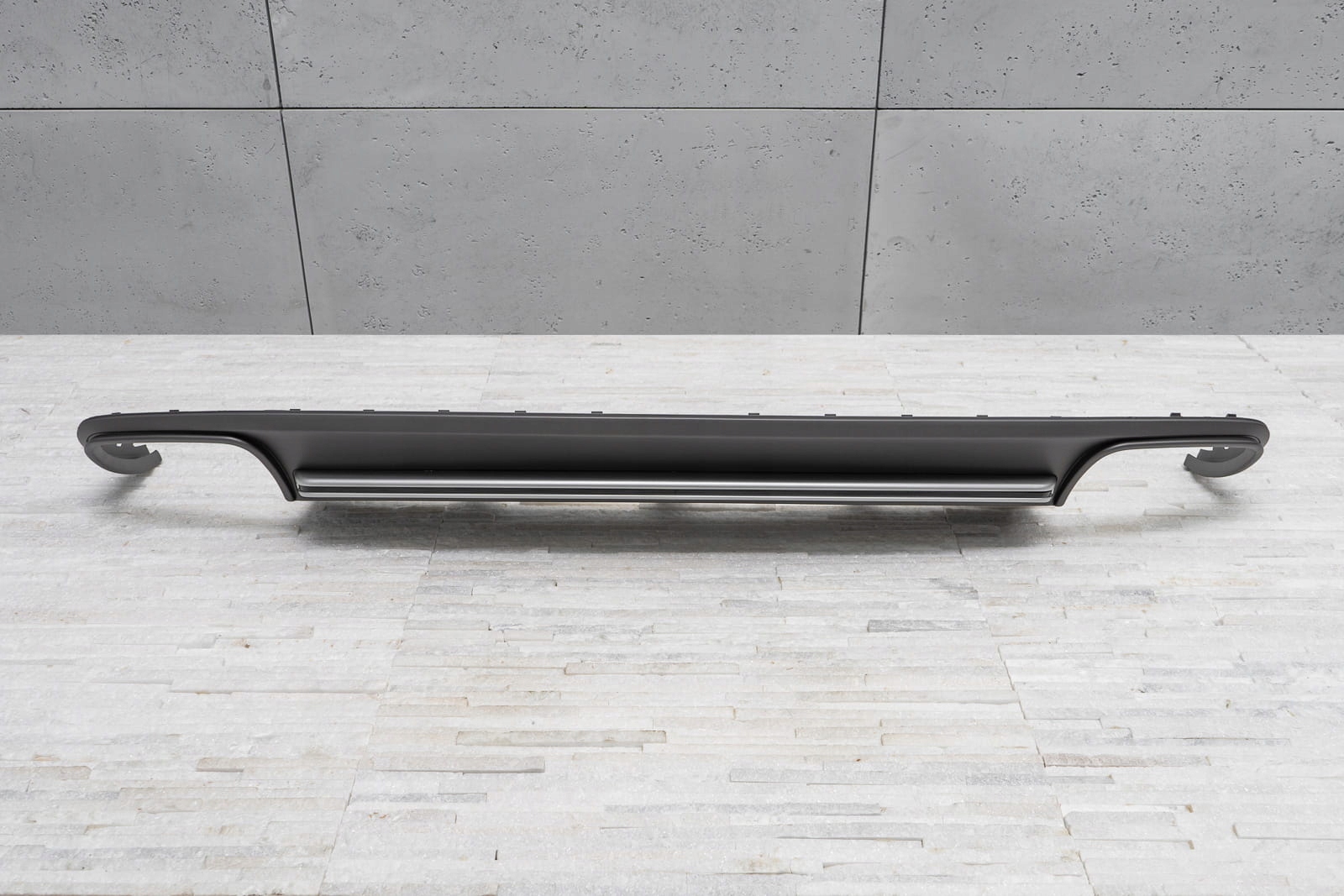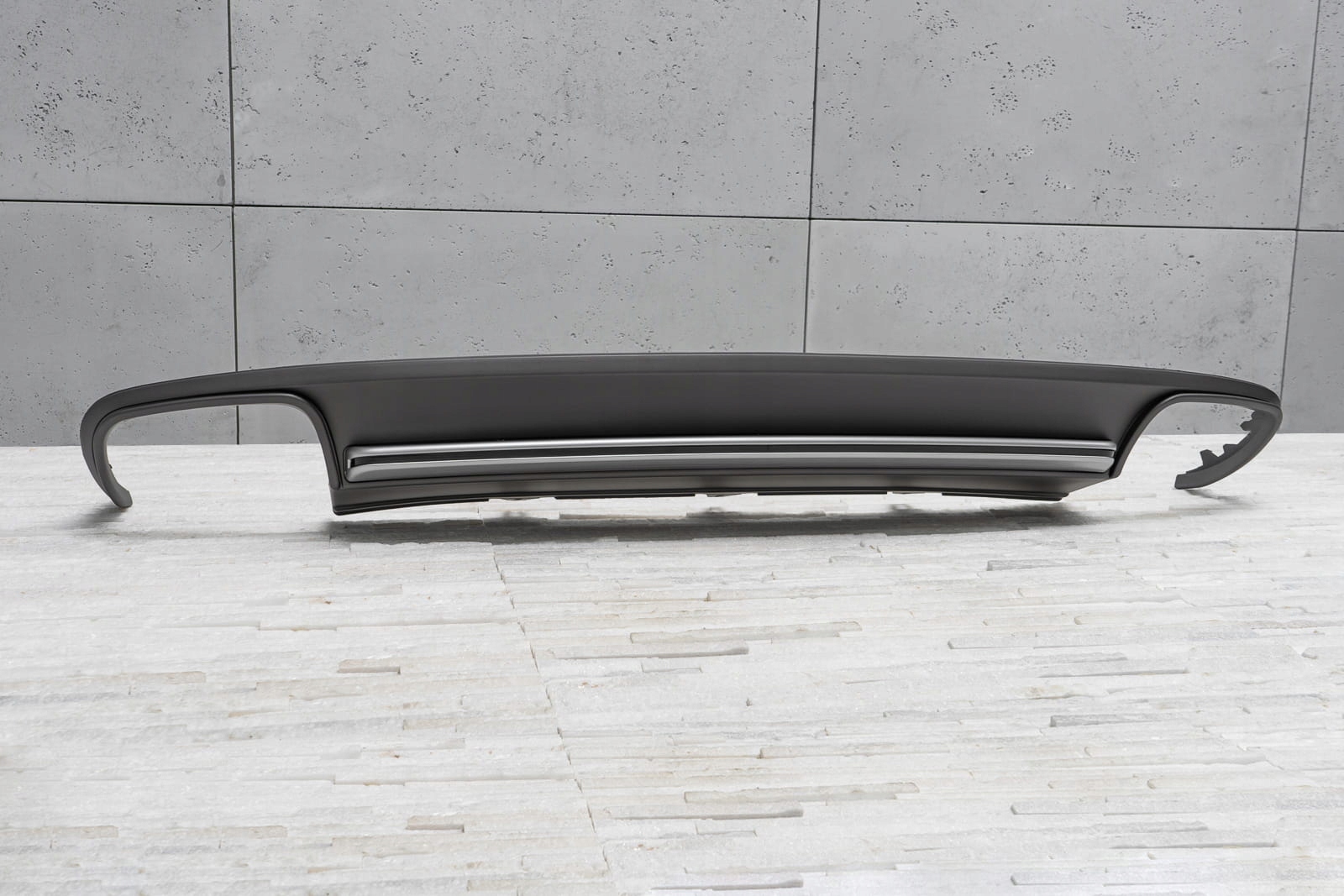 характерний подвійний вихлоп дозволяє домогтися ефекту укладання Audi A4 на версії S4. Дифузор розроблений так, щоб ідеально поєднуватися з іншими елементами оздоблення, доповнюючи динамічний і спортивний характер вашого автомобіля. Крім візуальних якостей, дифузор покращує аеродинаміку автомобіля, а також зменшує шум повітря, який проходить під автомобілем. Виріб виготовлено з високоякісного автомобільного АБС-пластику антрацитового кольору. Справжньою прикрасою дифузора є срібляста смуга з чорною смугою, яка привертає увагу і підкреслює вихлоп нашого автомобіля. У комплект поставки входить монтажне обладнання. дифузор-це запасна частина, сумісна з місцем установки в задньому бампері автомобіля. Для установки елемента. необхідно розібрати спідницю бампера, потім замінити її стилізованим дифузором.