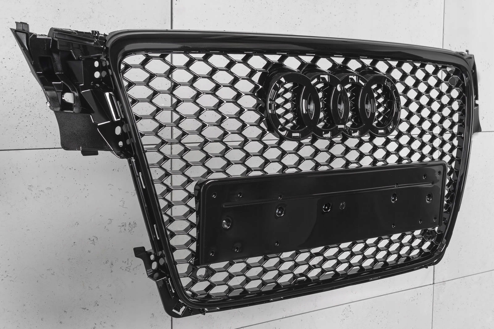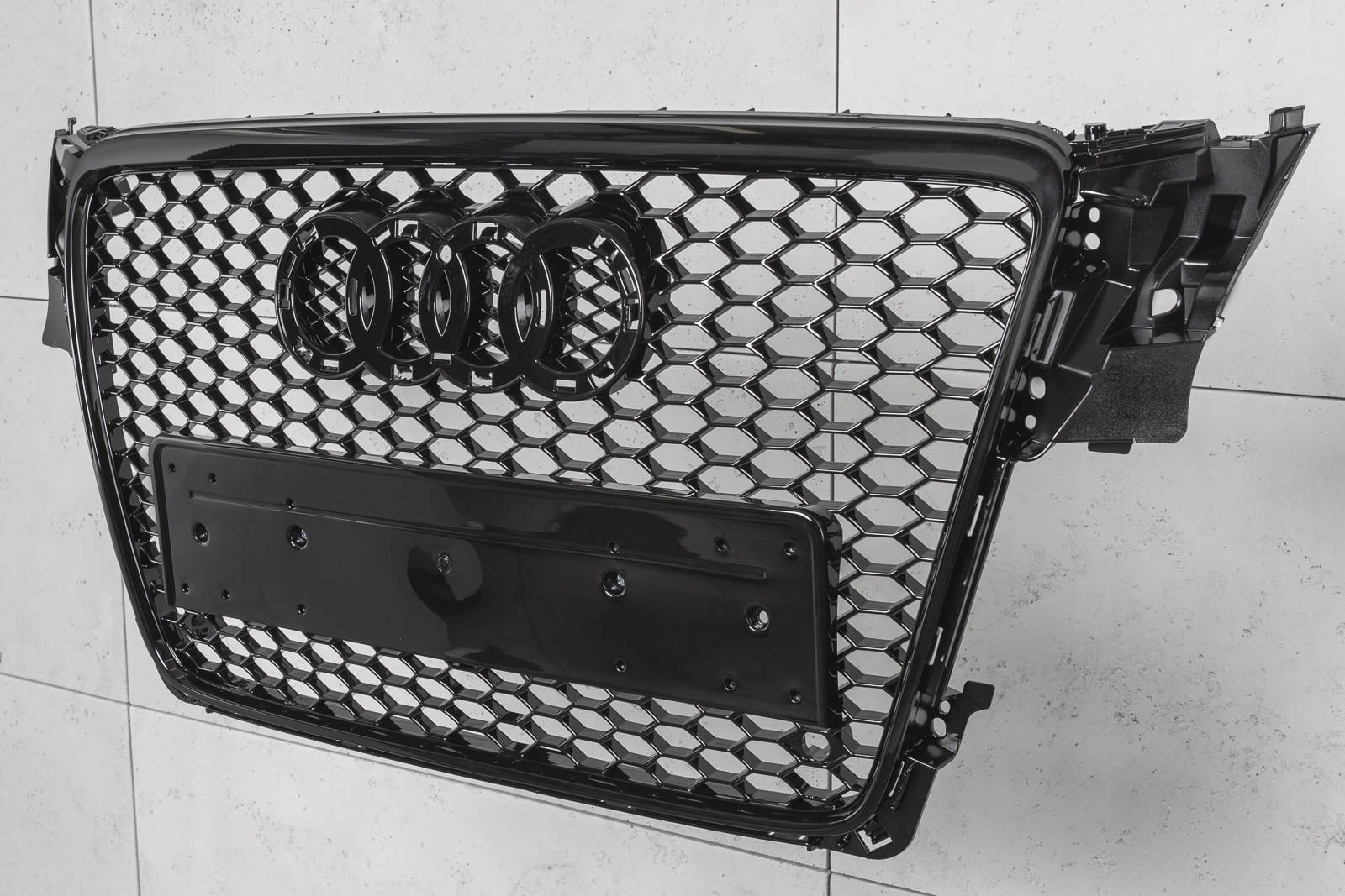 Спеціальну решітку розроблено в стилі, типовому для автомобілів сегменту RS. Решітка радіатора з характерним стільниковим візерунком неминуче нагадує респектабельні потужні спортивні автомобілі найвищої якості. Елемент вражає своїм спортивним характером, а глянець чорних пофарбованих елементів додає йому елегантності - завдяки чому він ідеально поєднується з вражаючим дизайном AUDI A4 / S4.