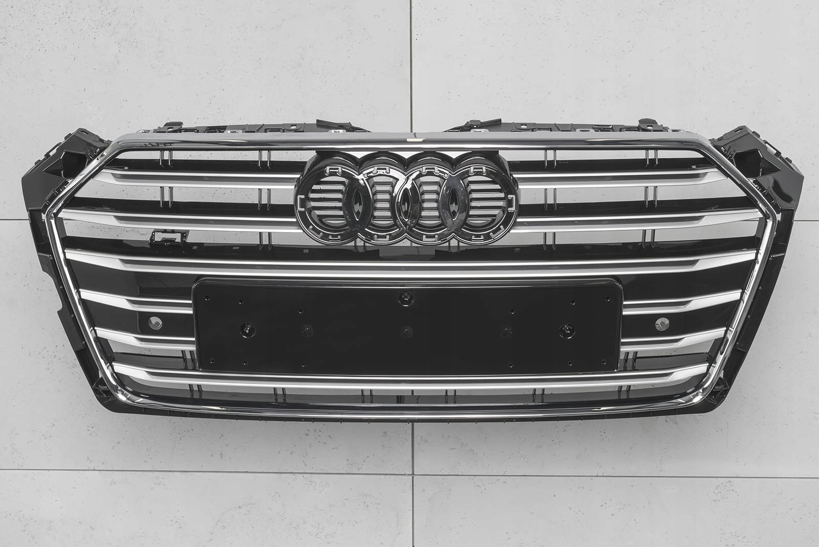 <е> стильна решітка радіатора, решітка радіатора, чорного кольору з хромованими елементами, призначена для AUDI A5 (8w6) 2017-2019 (версія перед фейсліфтингом). е>після установки решітка дозволяє створити абсолютно новий "Цивільний" стиль AUDI A5, стилізувавши його під спортивну версію s-LINE. Манекен має отвори для датчиків паркування PDC.