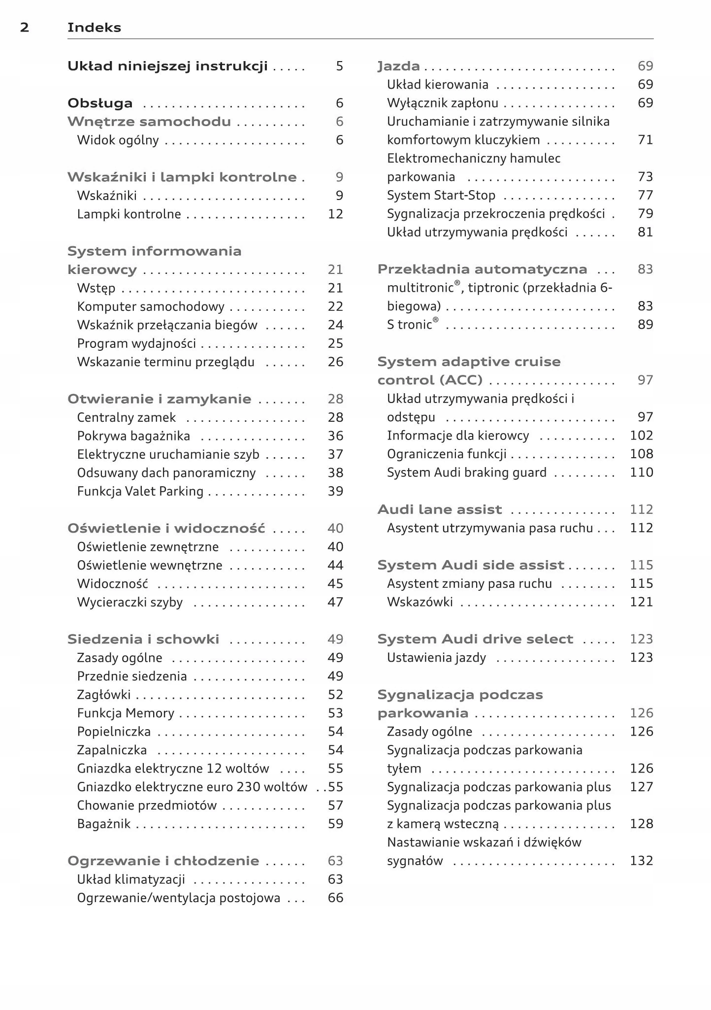 Керівництво по експлуатації audi містить всі комплектації і корисну інформацію про те, як ефективно і безпечно використовувати автомобіль, наприклад-індикатори, контрольні лампи, відкриття і закриття-освітлення і видимість, сидіння, відсіки для зберігання, опалення, вентиляція, Кондиціонер-водіння, Керівництво по експлуатації, технічне обслуговування автомобіля-рівні рідини, перевірка і заправка, аварійні дії, заміна коліс, запобіжники, заміна лампочок-ТЕХНІЧНІ характеристики... і багато інших речей, які дають відчуття безпеки і комфорту мандрівникам.Польське польське законодавство накладає на продавця обов'язок докладати інструкції з експлуатації автомобіля польською мовою к. Керівництво з експлуатації автомобіля нове і польською мовою.е>