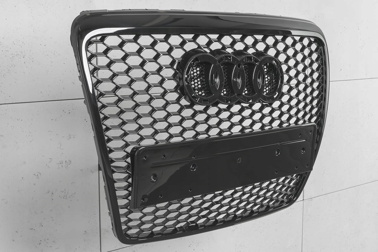 виділений гриль розроблений в стилі, характерному для автомобілів сегмента RS. Решітка гриля з характерним стільниковим малюнком, незамінне нагадує вселяють страх, потужні спортивні автомобілі вищого класу. Елемент вражає своїм спортивним характером, а блиск чорних лакованих елементів надає йому елегантність, завдяки чому він ідеально поєднується з вражаючим дизайном AUDI A6.е>
