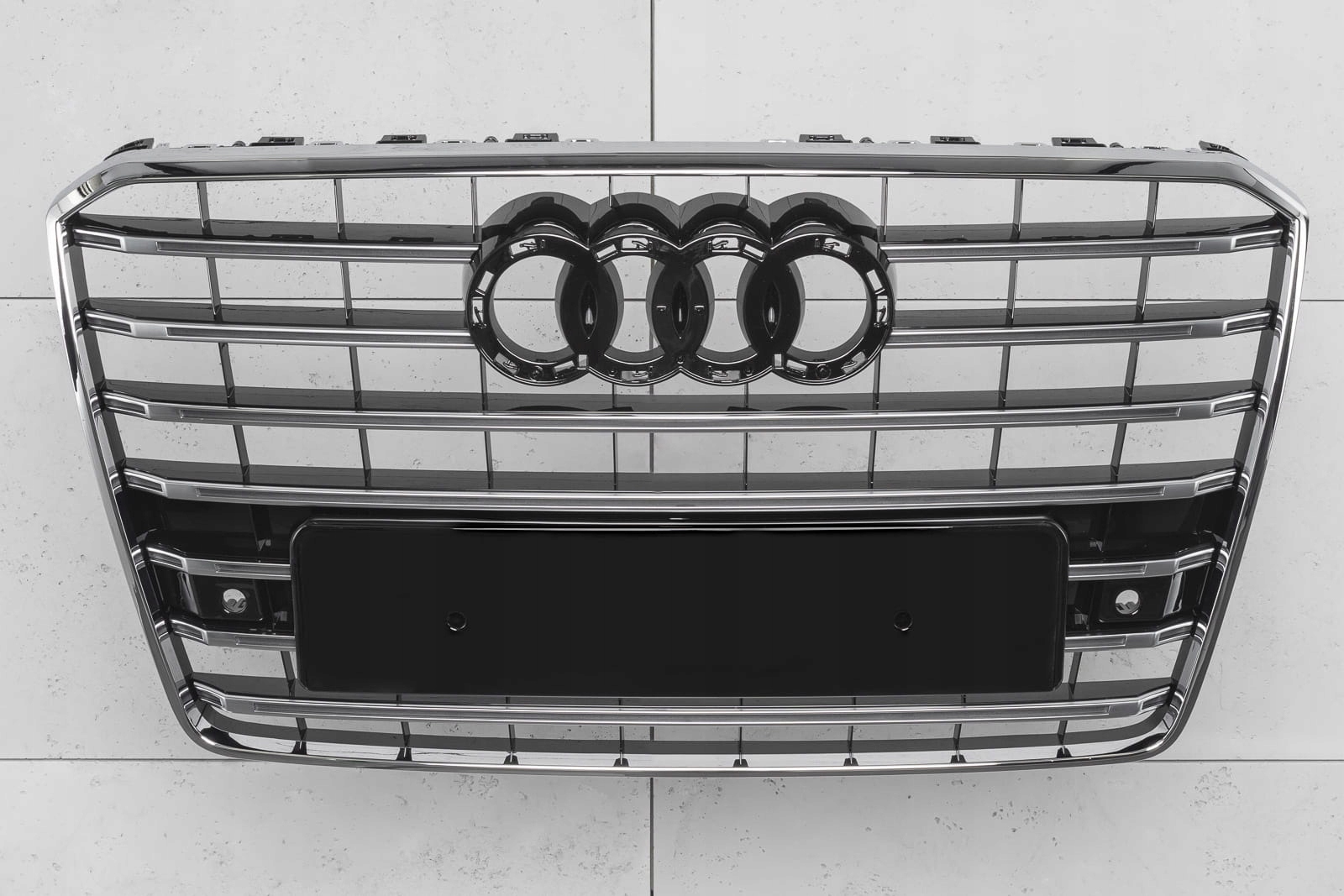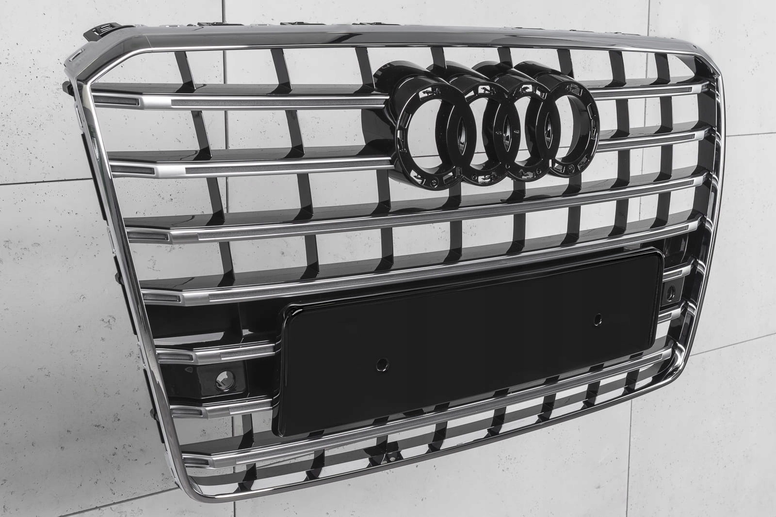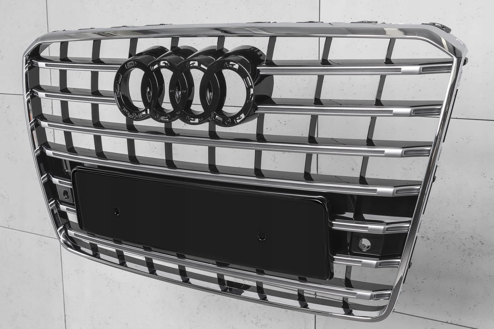 Спеціальна решітка виконана в стилі, типовому для автомобілів S-LINE. Решітка радіатора прикрашена широкими хромованими поперечинами, які неодмінно нагадують про респектабельні, потужні автомобілі топ-полиці. Елемент вражає своїм спортивним характером, а глянець хромованих елементів додає елегантності - завдяки чому він ідеально поєднується з вражаючим дизайном AUDI A8.
