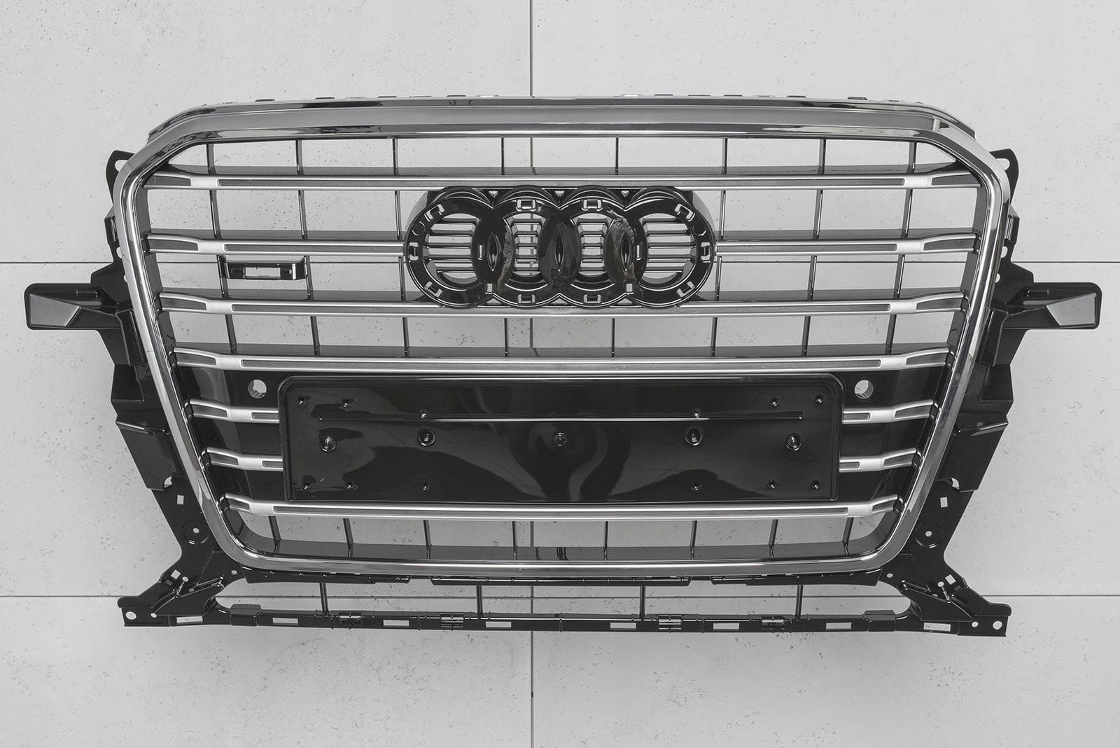 <е> стильна решітка радіатора, решітка радіатора, чорного кольору з хромованими елементами, призначена для AUDI Q5 (8R) 2013-2017 (версія з фейсліфтингом). е>після установки решітка дозволяє створити абсолютно новий "Цивільний" стиль AUDI Q5, стилізувавши його під версію s-LINE. Манекен має отвори для датчиків паркування PDC.