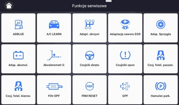 скидання сервісу та перевірки масла повна робота електричного стоянкового гальма EPB (реверс супортів при заміні колодок, налаштування сили тиску поршня, товщини колодки) регенерація DPF фільтра (перевірка рівня пилу, горіння, регенерація, адаптація)адаптація коробки передач калібрування датчика кута повороту керма адаптація нового акумулятора адаптація дросельної заслінки кодування інжектора регулювання фар регулювання підвіски і багато інших (діагностичний комбайн)!!!!! Diagnoskop повністю працює польською мовою та є авторизованим дистриб'ютором ПОЛЬСЬКОГО БРЕНДУ AUTOXSCAN!