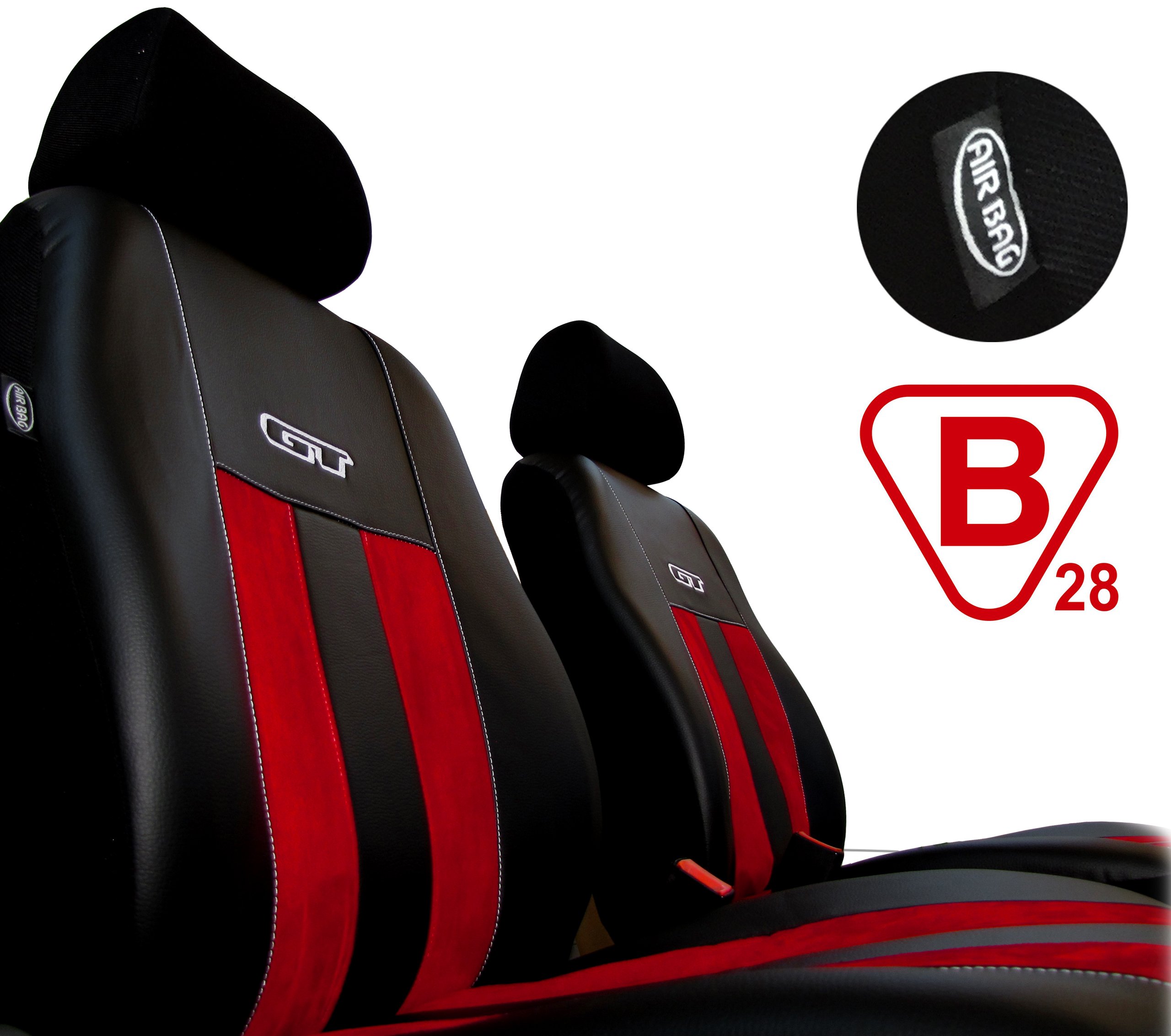 Замість бічних подушок безпеки ми використали спеціальний невидимий шов, завдяки якому чохол не затримає їх реакцію, якщо подушки безпеки потрібно активувати. Це підтверджено сертифікатом безпеки B28 , виданим PIMOT.