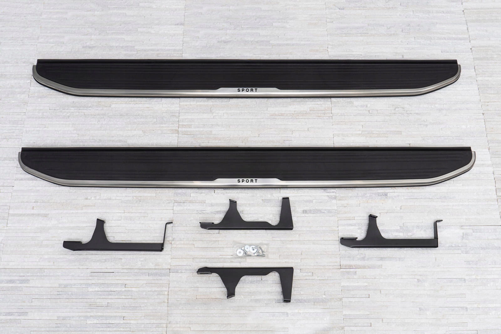 У набір входить набір підніжок (права і ліва), елементи збірки та інструкція. Пороги встановлені на заводські точки кріплення. Установка ступенів не вимагає свердління додаткових отворів! Ми рекомендуємо професійну установку в майстерні ( ми знаємо з досвіду, що найкраще скористатися послугами малярних або кузовних майстерень, оскільки на цих підприємствах найчастіше встановлюють планки, плінтуса та сходинки, тому складання цих установок вимагає інтуїтивно зрозумілої діяльності ).