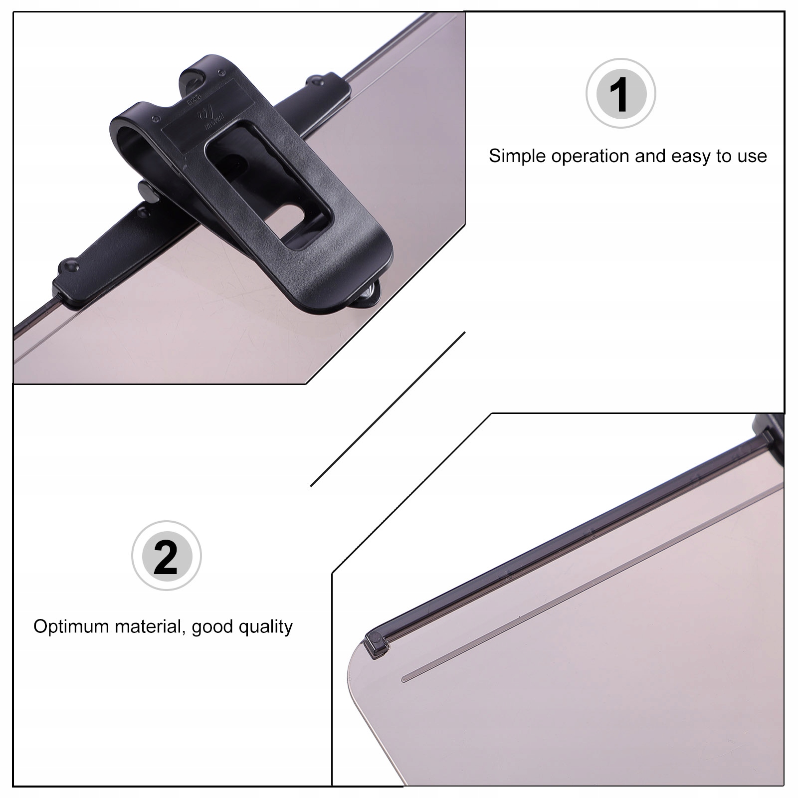 це антибліковий сонцезахисний козирок, виготовлений з безпечного і ніжного полімерного матеріалу, міцний, хороша текстура, і може добре служити. З хорошою технологічною інформацією та розумною структурою, ви можете перемістити сонцезахисний козирок відповідно до фактичних потреб, щоб отримати кращий захист. Це дуже прості та практичні аксесуари для автомобільних інструментів, захист від очей, може забезпечити вам більш комфортне середовище водіння.