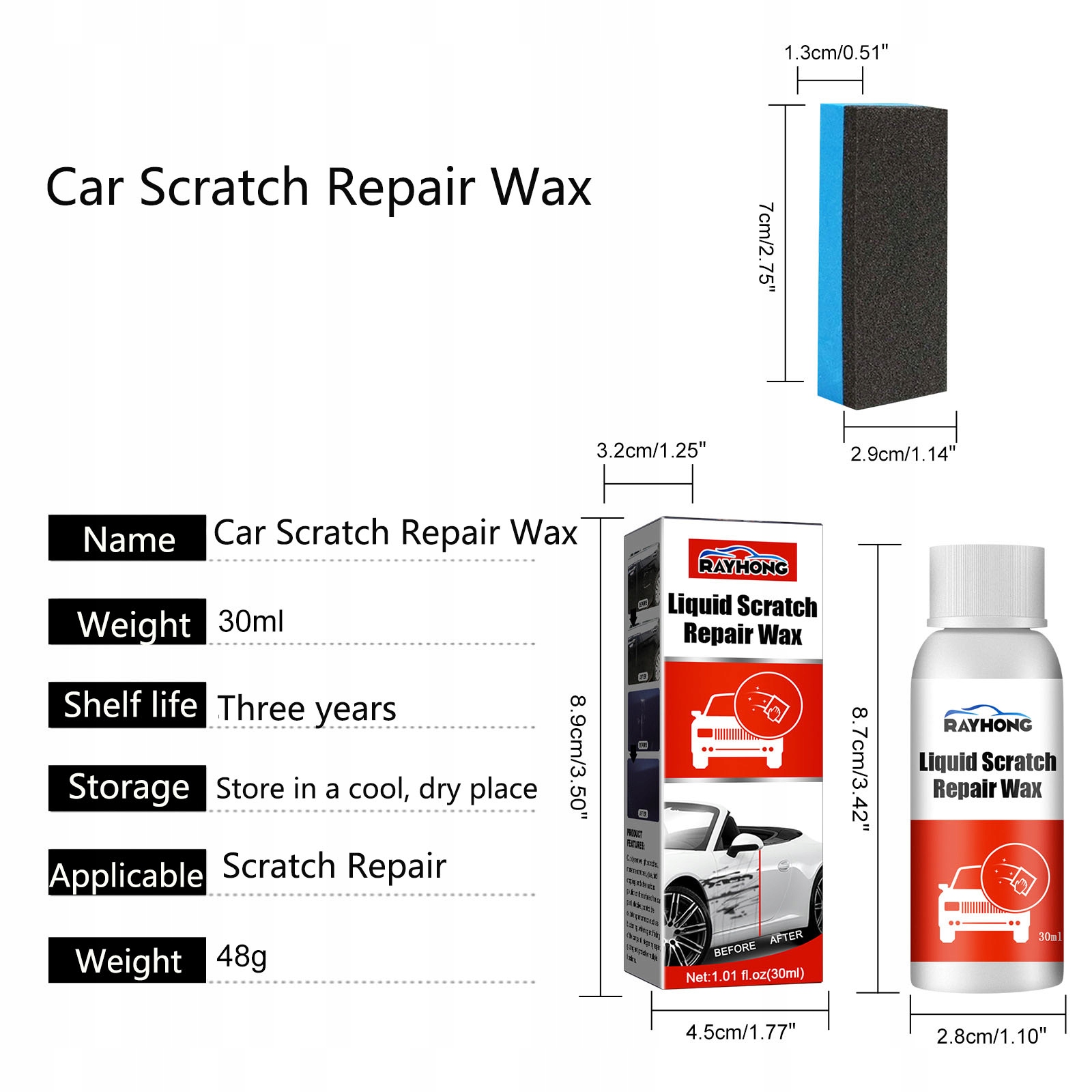 пристрій для видалення подряпин з автомобіля простий і зручний у використанні. Це може зробити вироби зі шкіри абсолютно новими при нанесенні. Він може виправити блиск глянцевих поверхонь у салоні автомобіля, побутовій техніці, меблях та виробах з АБС, запобігти старінню та знебарвленню, а також запобігти потраплянню води, грибків та плям та пилу.