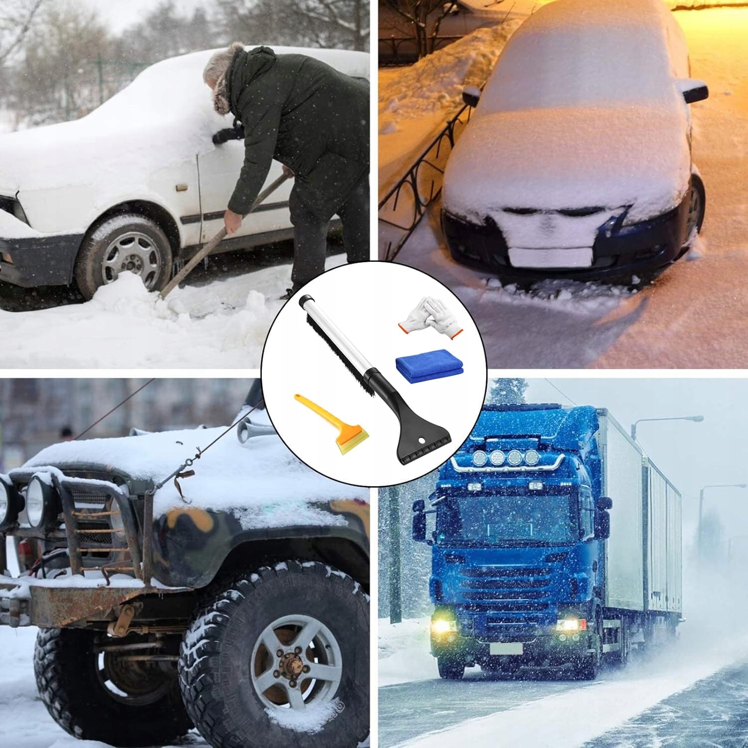 Багатофункціональна лопата-скребок для льоду видаляє сніг та іній. Для підмітання снігу використовують великі щітки. Використовуючи снігові щітки та скребки, ви зможете швидко очистити зимовий лід і сніг зі скла та вікон. Недорогий набір У набір для прибирання снігу входять інструменти для прибирання снігу два в одному, гумова лопата для снігу, рушники та рукавички. Ідеальний набір для прибирання снігу допоможе вам покращити вашу роботу у всіх відношеннях. Дуже стабільна головка лопати з АБС-пластику Жорсткий пластик з АБС-пластику, міцніший за звичайну лопату для снігу, міцний і довговічний, хороша морозостійкість, може розчищати лід і сніг, а чутлива і гладка головка лопати не подряпає ваш автомобіль. Телескопічну палицю з алюмінієвого сплаву, що розширюється, можна подовжити від 42 см до 60 см. Головка щітки діаметром 25 см може одночасно очистити велику поверхню від льоду та снігу, що ефективно прибирає сніг, економить простір і зручно транспортувати та переробляти. Широкий спектр застосування За допомогою цієї лопати для снігу ви легко видалите товстий сніг або лід із лобового скла автомобіля. Снігоприбиральна лопата також може очищати електромобілі, велосипеди та засніжені будинки, скляні двері та вікна та інший сніг.
