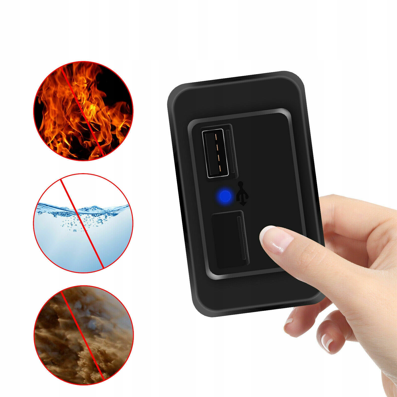 - водонепроникний і пилонепроникний: оснащений подвійною USB-кришкою, з водонепроникною і пилонепроникною кришкою, повністю адаптованою для зовнішнього використання.е>